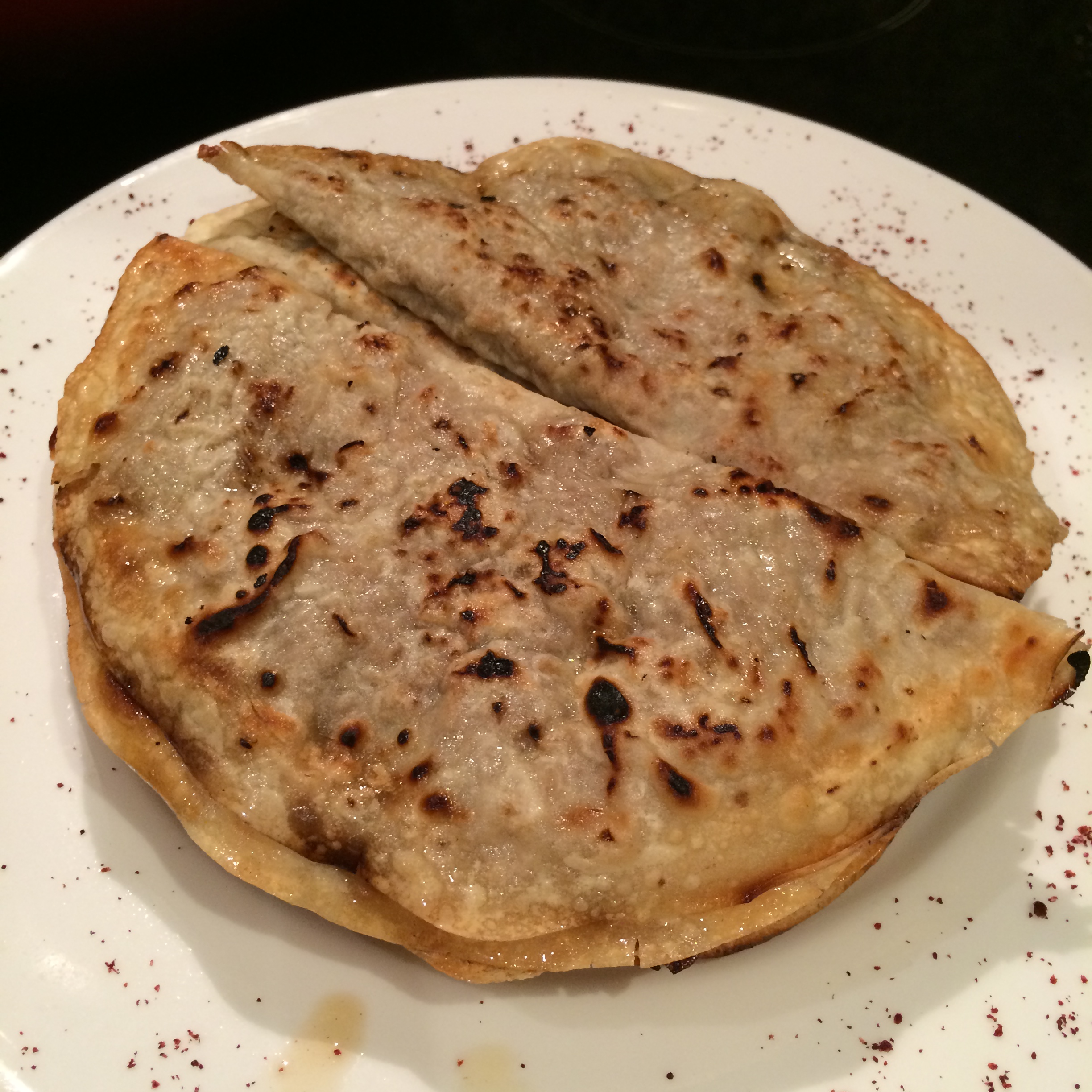 Then you (traditionally) fry your kutab on a convex iron griddle stalled saj. My kutabs had to settle for a ceramic frying pan. I first tried to fry them without any fat like my mom normally does, but it didn’t go well with the first batch, so I lightly brushed the remaining kutabs with sunflower oil before putting them in the pan. I will spare you the details of how my two(!) ceramic pans looked afterwards, but all I say is that it was absolutely worth the trouble and the overall kitchen damage!
