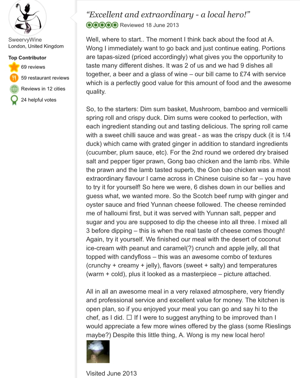 I thought it has been a while since my last rave about A. Wong and decided it’s time to share a few more dishes I have tried during my last visit. It was our first time and a whole new experience to be seated at the “Chef’s table”, which is the bar with the uninterrupted view of the open plan kitchen. There you can watch the team chopping, frying, steaming, roasting and bubbling away fresh ingredients whilst enjoying your marvelous meal.